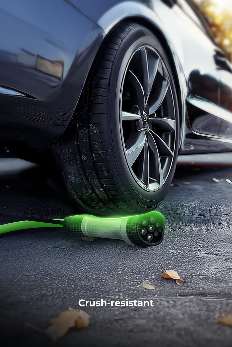 Yüksek mukavemetli malzemelerden üretilen şarj fişi, aşırı koşullarda tam işlevselliği sağlamak amacıyla zorlu darbe dayanıklılık testlerinden geçmiştir. İster ağır hizmet araçları tarafından ezilsin, ister zorlu ortamlarda kullanılsın, güvenilir şarj performansı garanti altındadır.